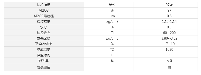 97氧化鋁陶瓷性能參數(shù)